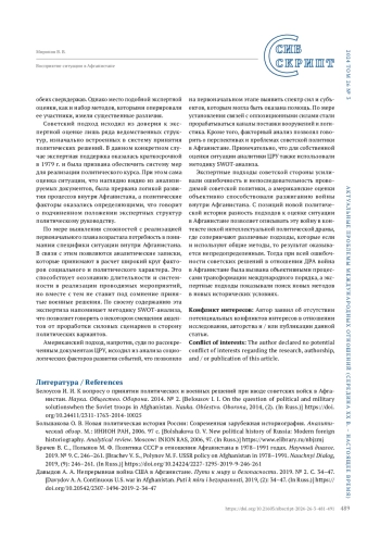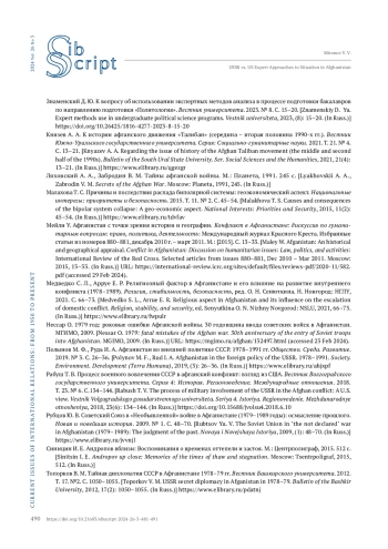 1. Белоусов И. И. К вопросу о принятии политических и военных решений при вводе советских войск в Афганистан. Наука. Общество. Оборона. 2014. № 2. https://doi.org/10.24411/2311-1763-2014-10025