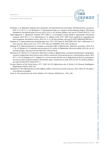 21. Якупова Д. В., Якупов Р. А. Советское общество и война в Афганистане в оценках Центрального разведывательного управления. Известия высших учебных заведений. Поволжский регион. Гуманитарные науки. 2019. № 2. С. 84-99. https://doi.org/10.21685/2072-3024-2019-2-7