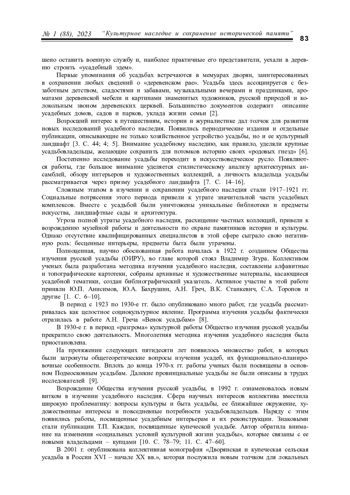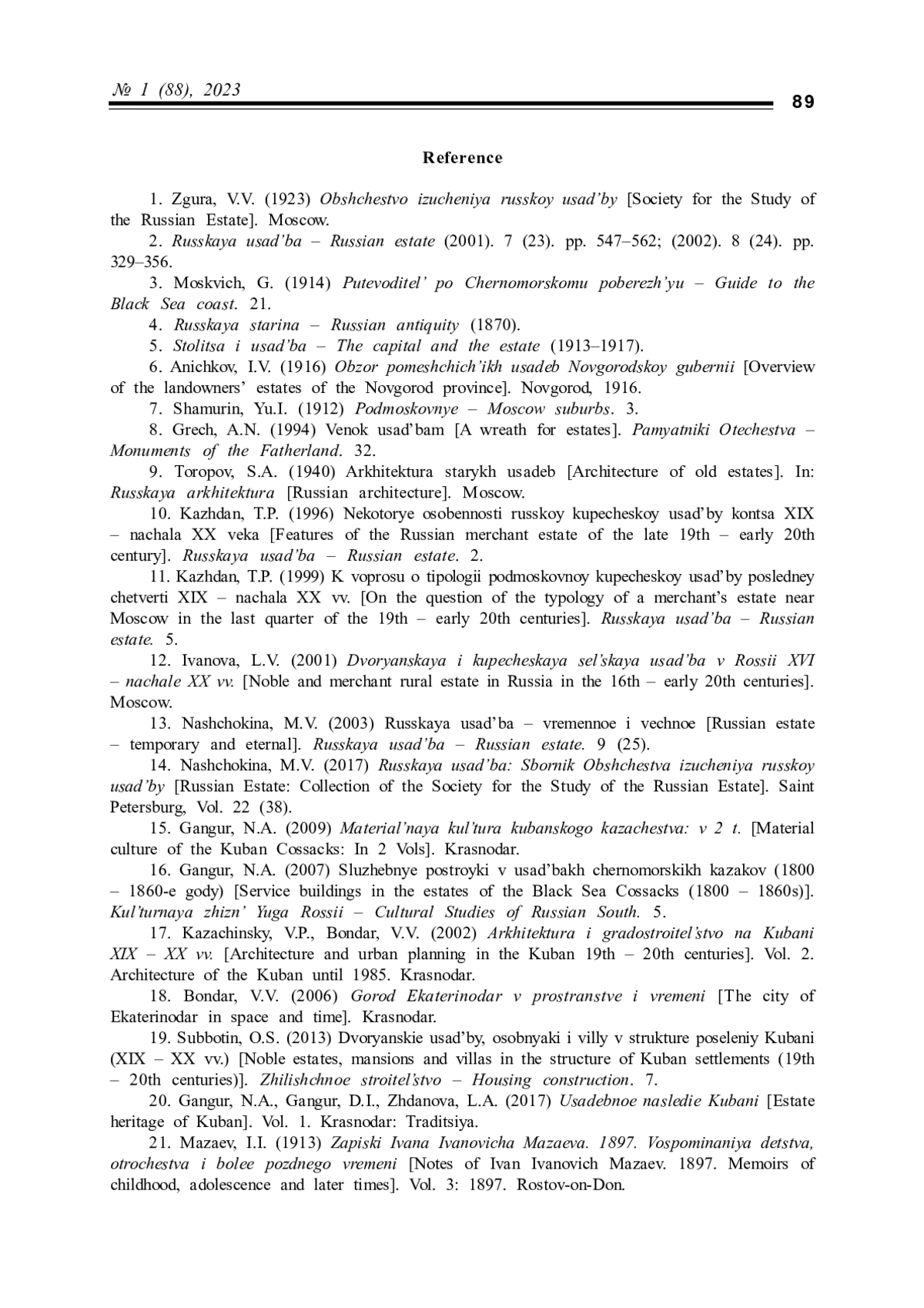 Статья: ПРОЕКТЫ В СФЕРЕ ИЗУЧЕНИЯ И ПОПУЛЯРИЗАЦИИ УСАДЕБНОГО НАСЛЕДИЯ КУБАНИ (2023)