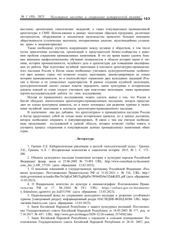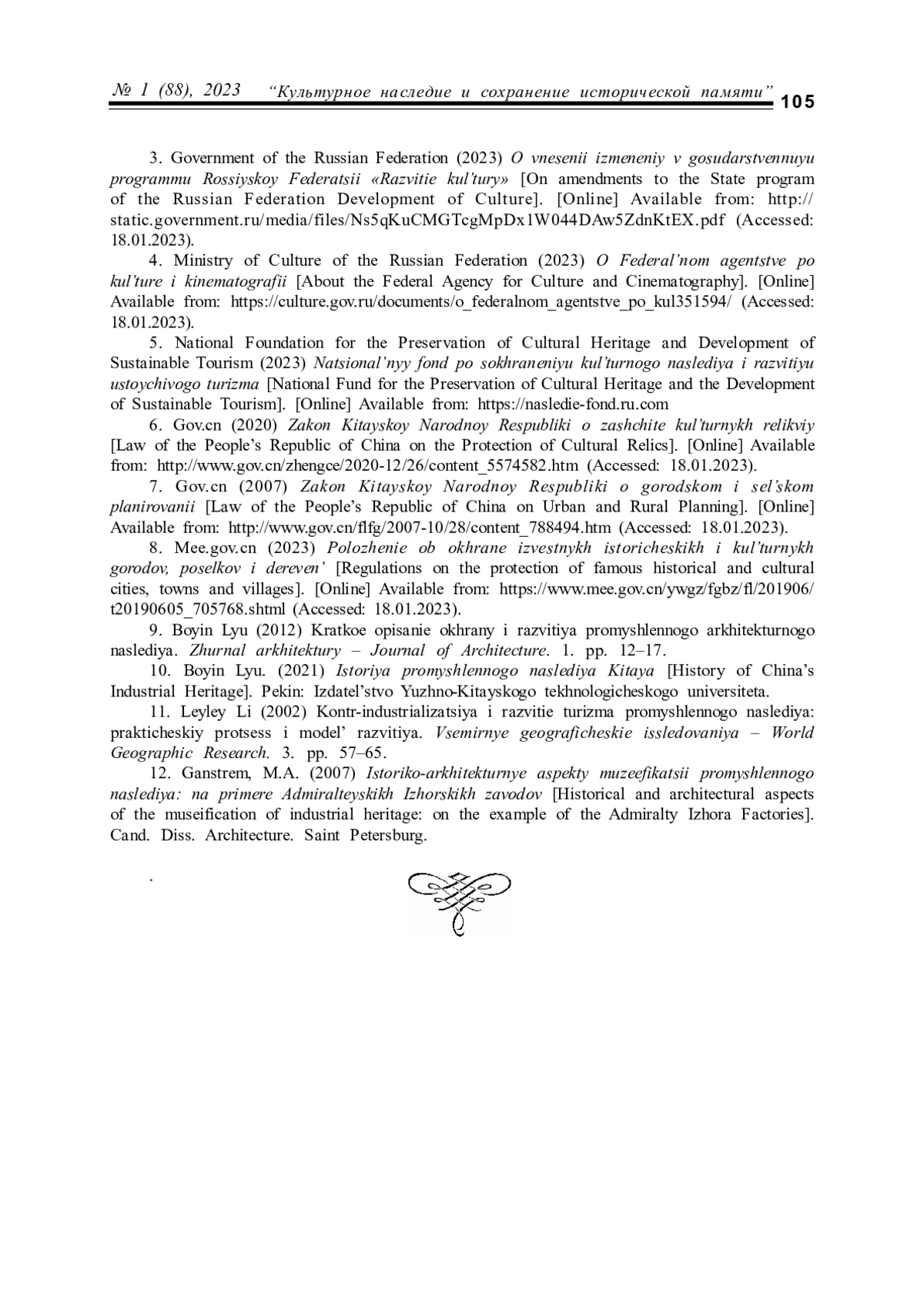 Статья: ОТ КОНСЕРВАЦИИ К ПРОДОЛЖЕНИЮ ЖИЗНИ: ИССЛЕДОВАНИЕ ПОТЕНЦИАЛА МУЗЕЙНОЙ ЭКСПОЗИЦИИ В КОНТЕКСТЕ АРХИТЕКТУРНО-ПРОМЫШЛЕННОГО НАСЛЕДИЯ РОССИИ И КИТАЯ (2023)