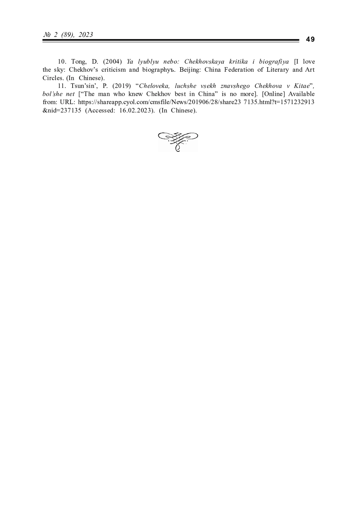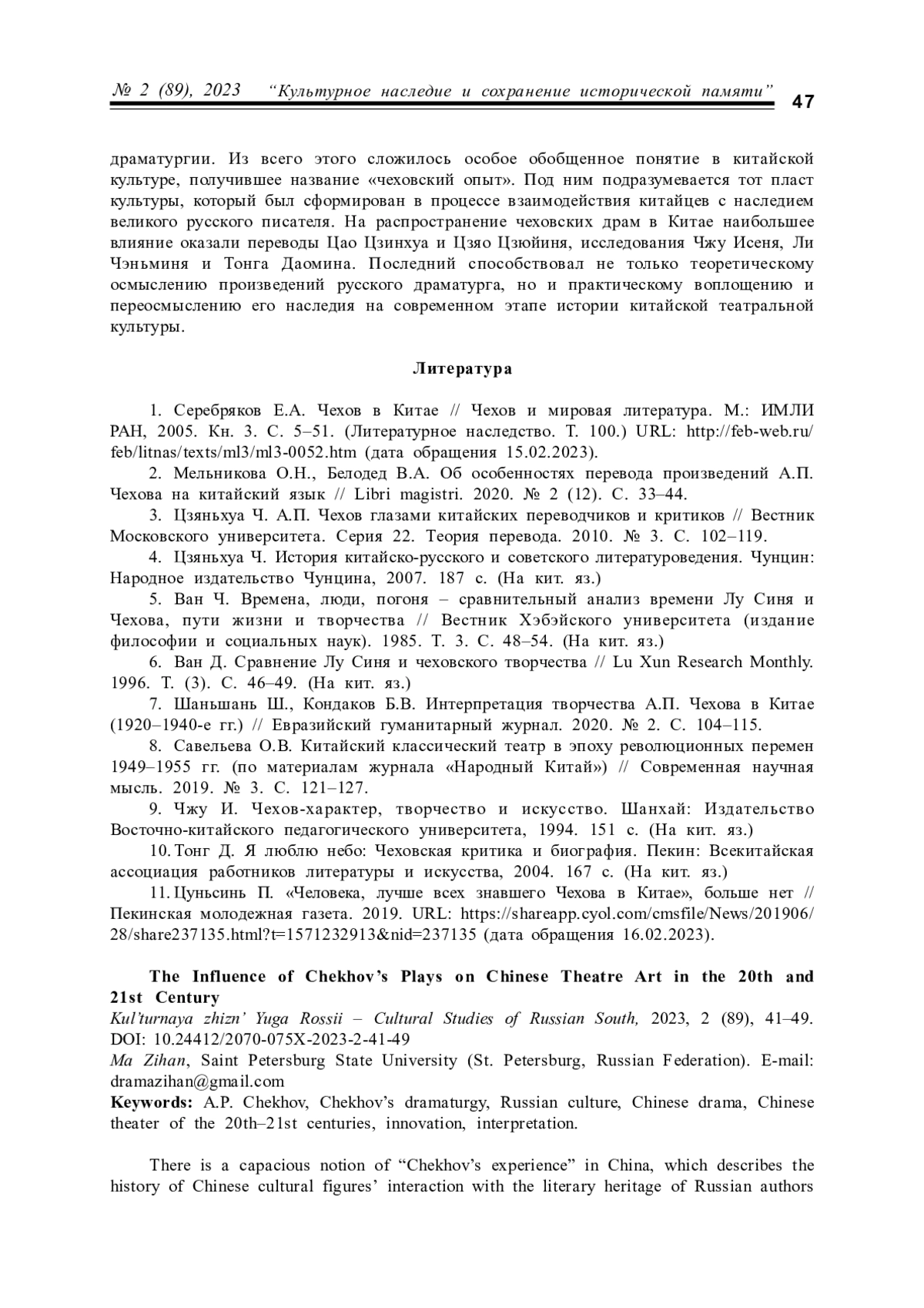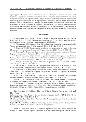 11. Цуньсинь П. “Человека, лучше всех знавшего Чехова в Китае”, больше нет // Пекинская молодежная газета. 2019. URL: https://shareapp.cyol.com/cmsfile/News/201906/28/share237135.html?t=1571232913&nid=237135 (дата обращения 16.02.2023).