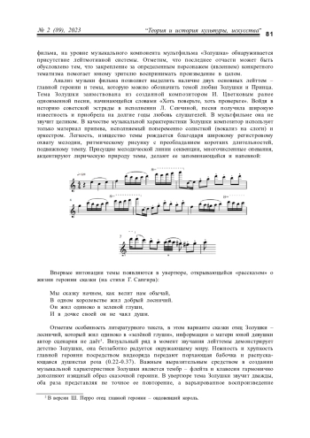 «Золушка» принадлежит к числу самых популярных сказочных сюжетов в мировой культуре. Существуя в разных литературных версиях, на протяжении длительного времени, в разные эпохи она привлекала и продолжает привлекать внимание композиторов, кинематографистов, режиссеров-постановщиков. Вопросы бытования и трактовки сюжета (от происхождения до его трансформации) нашли неоднократное осмысление в научной литературе [1, 2, 3, 4, 5, 6, 7]. Вместе с тем практически не затронутой исследователями остается проблема музыкальной интерпретации сказки в ее экранных версиях