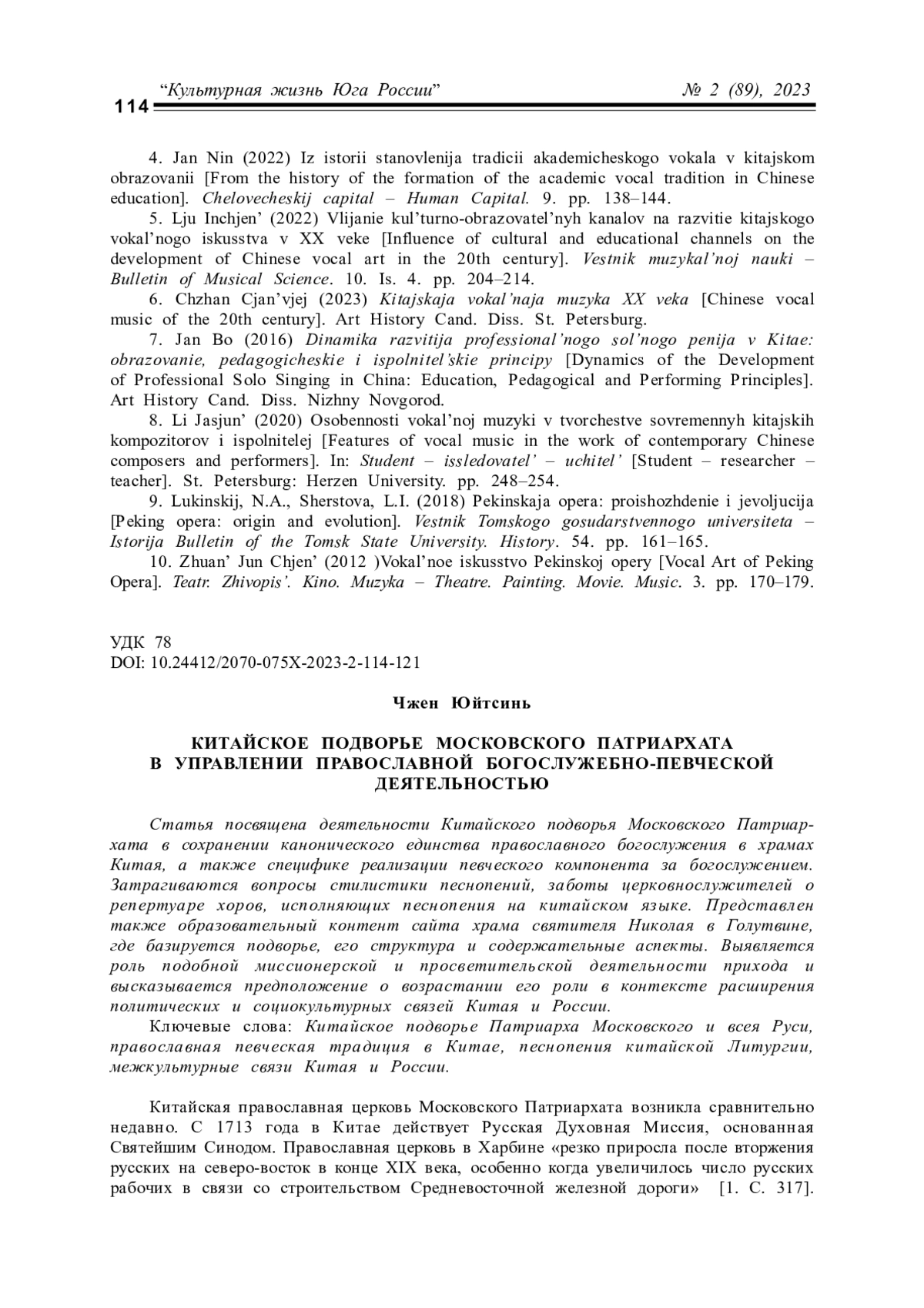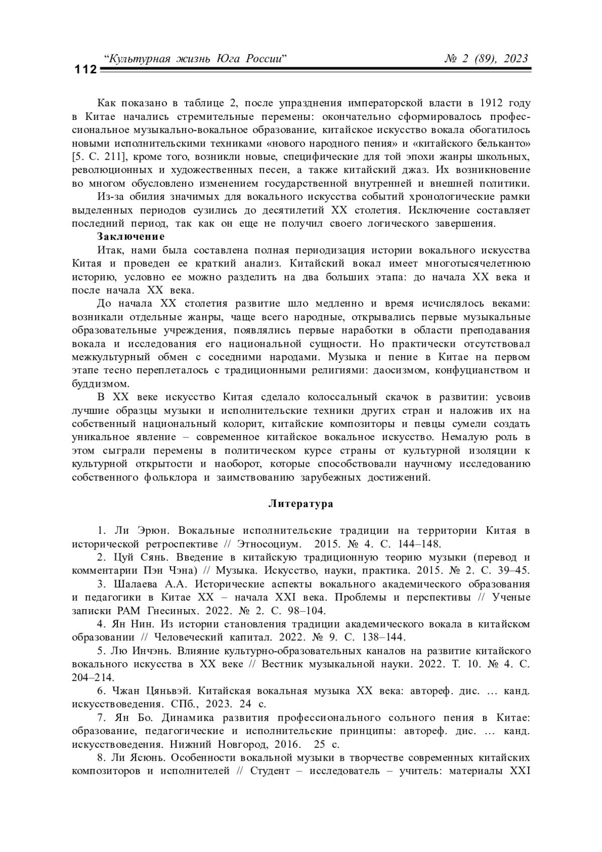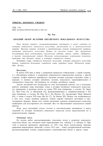 МА Ч. КРАТКИЙ ОБЗОР ИСТОРИИ КИТАЙСКОГО ВОКАЛЬНОГО ИСКУССТВА // КУЛЬТУРНАЯ ЖИЗНЬ ЮГА РОССИИ. 2023. № 2 (89)