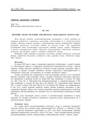 Статья: КРАТКИЙ ОБЗОР ИСТОРИИ КИТАЙСКОГО ВОКАЛЬНОГО ИСКУССТВА (2023)