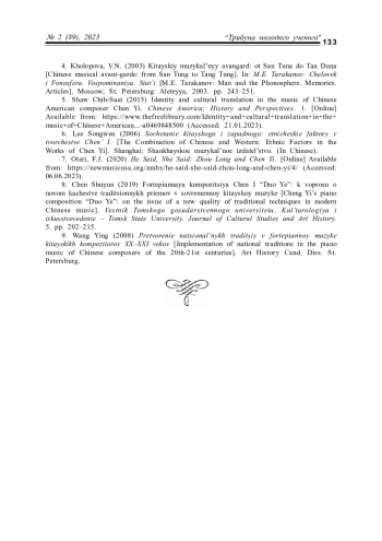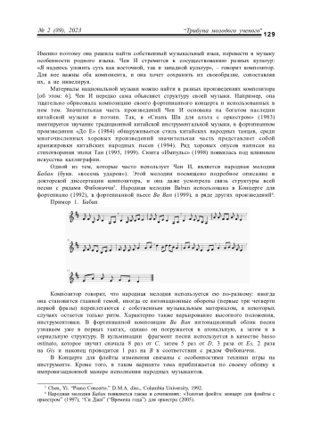 Статья посвящена рассмотрению неофольклорных тенденций в китайской музыке конца XX – начала XXI века на примере творчества китайско-американского композитора Чен И. Автор статьи в ходе исследования определяет сущность неофольклоризма в китайской музыке и выделяет характерные качества, присущие неофольклорной тенденции Чен И. В ходе исследования определяется характер работы Чен И с фольклорными источниками, которые получают у композитора свободное претворение. В результате выявляются свойственные автору трактовка ладовой основы, тембровые решения, особенности применения современных западных техник композиции