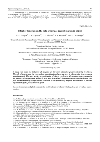 8. Расмагин С. И. Воздействие вольфрамового покрытия на свойства высокоомного компенсированного кремния.