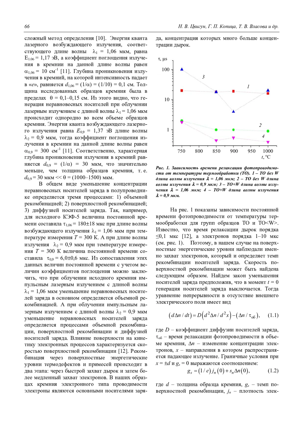 Влияние вольфрама на скорость поверхностной рекомбинации в кремнии Цвигун Н. В., Копица Г. П., Власова Т. В., Крыштоб В. И., Расмагин С. И. 64