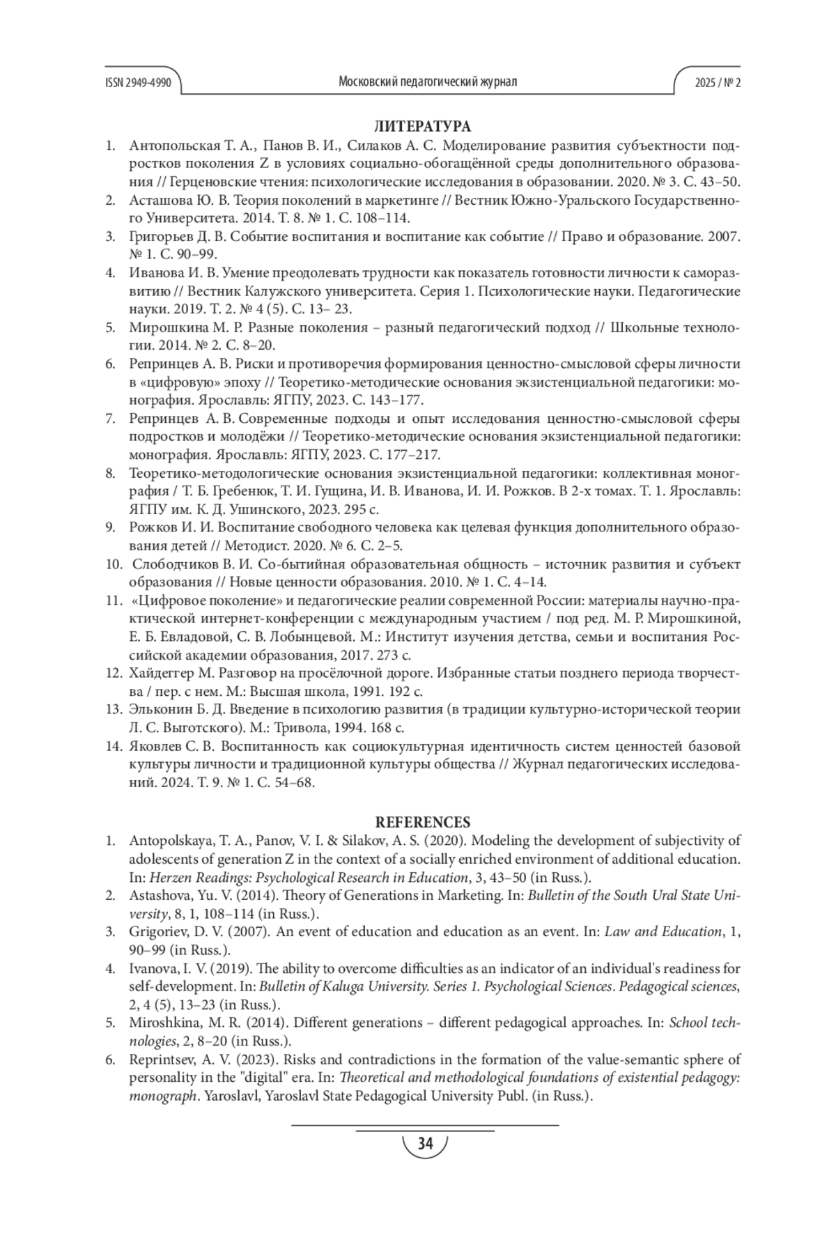 Журнал: МОСКОВСКИЙ ПЕДАГОГИЧЕСКИЙ ЖУРНАЛ