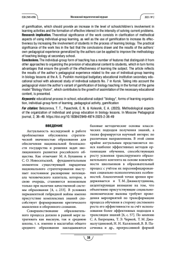 16. Хаустов С. А. Развитие учебной мотивации при использовании индивидуально-группового обучения биологии в 9-м классе // Педагогическое образование и наука. 2024. № 5. С. 99-105. EDN: BAPQAN