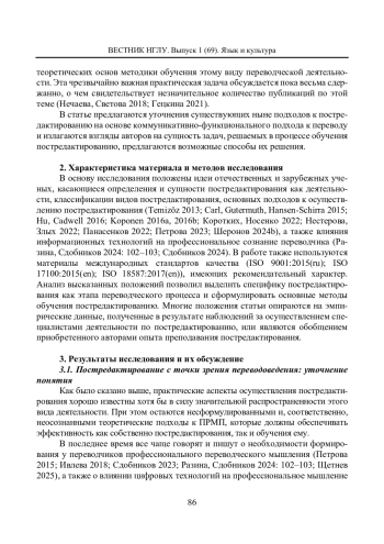 10. Нестерова Н. М., Злых Н. М. Постредактирование машинного перевода как профессиональный навык современного переводчика // Перевод, реклама и PR в современной коммуникации. Пермь: ПНИПУ, 2022. Т. 1. С. 106-109. [Nesterova, Natalia M., & Zlykh, Natalia M. (2022) Postredaktirovanie mashinnogo perevoda kak professional’nyj navyk sovremennogo perevodchika (Machine Translation Post-editing as a Professional Skill of a Modern Translator). In Perevod, reklama i PR v sovremennoj kommunikacii (Translation, Advertising and PR in Modern Communication). Perm: PNRPU, 1, 106-109. (In Russian)]. EDN: FPXIEN