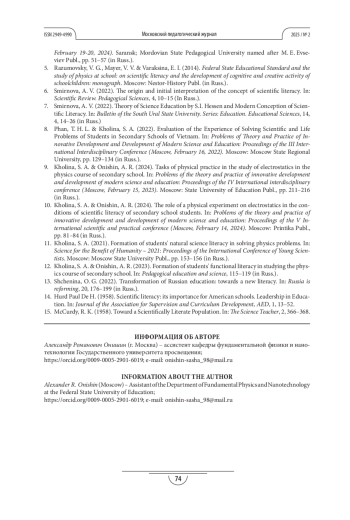 12. Холина С. А., Онишин А. Р. Формирование функциональной грамотности обучающихся при изучении курса физики средней школы // Педагогическое образование и наука. 2023. № 6. С. 115-119. EDN: LNXKIV