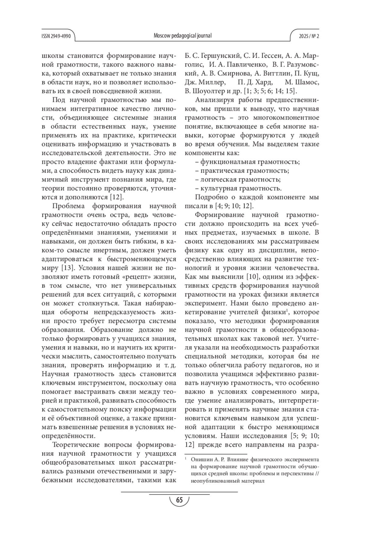 3. Марголис А. А. Новая научная грамотность: проблемы и трудности формирования // Психологическая наука и образование. 2021. Т. 26. № 6. C. 5-24. EDN: WXQAFX