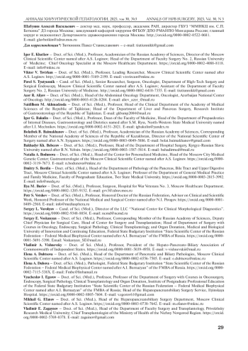 Уважаемые коллеги! По решению и при всесторонней поддержке редакции в очередном номере “Анналов хирургической гепатологии” нами подготовлен раздел, посвященный диагностике и лечению пациентов с кистозными новообразованиями поджелудочной железы. Актуальность тематики, на наш взгляд, очевидна. Улучшение доступности инструментальных методов диагностики, таких как КТ и МРТ, приводит к значительному росту выявляемости кистозных неоплазий поджелудочной железы. При этом ввиду значительной разнородности семиотики и сложностей определения прогноза при различных видах кистозных образований в профессиональном сообществе происходит множество дискуссий в части определения тактических подходов к лечению таких больных. Существующие рекомендации зачастую предлагают различную тактику, разные базовые критерии для ее выбора, что затрудняет их использование на практике. Особые сложности возникают, когда такие пациенты проходят лечение и наблюдаются в общесоматических не узкоспециализированных медицинских учреждениях.