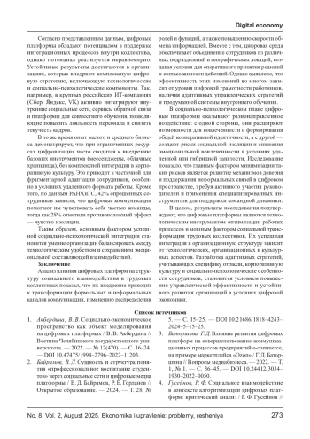 Цифровые платформы являются инструментом преобразования современной экономики и социальной сферы, влияя на организацию коммуникаций, структуру занятости и динамику трудовых отношений.