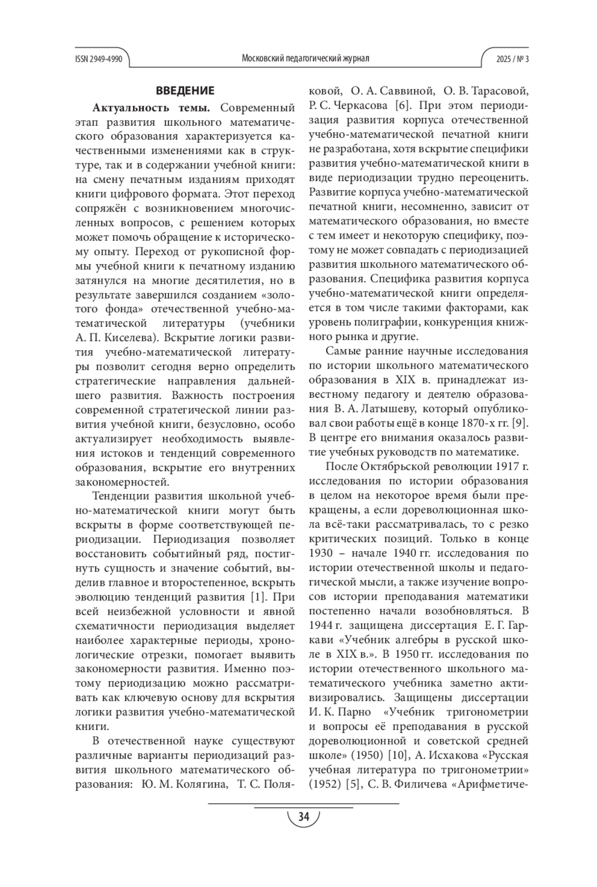 6. Киселева Т. В. Проблема периодизации в исследованиях по истории математического образования// Вестник Елецкого государственного университета им. И. А. Бунина. Серия: История и теория математического образования. 2006. № 11. С. 132-140.