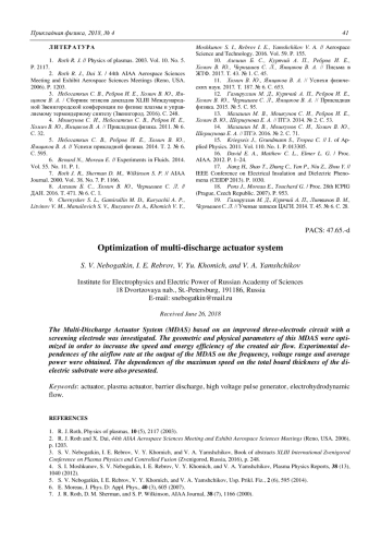 S. V. Nebogatkin, I. E. Rebrov, V. Yu. Khomich, and V. A. Yamshchikov Optimization of multi-discharge actuator system 38