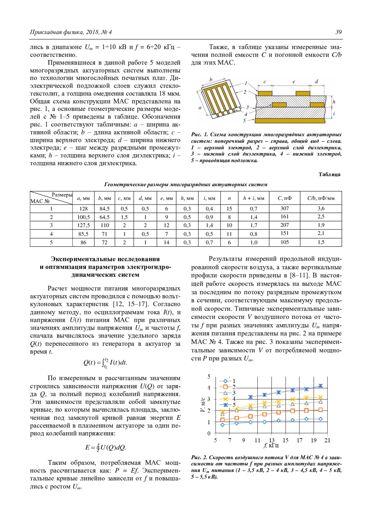 Исследована многоразрядная актуаторная система (МАС) на основе усовершенствованной трехэлектродной схемы с экранирующим электродом. Проведена оптимизация геометрических и физических параметров подобной МАС с целью повышения скорости и энергетической эффективности создаваемого потока. Получены экспериментальные зависимости скорости воздушного потока на выходе МАС от частоты, амплитуды напряжения и средней мощности питания. Также представлены зависимости максимальной скорости от суммарной толщины диэлектрической подложки.