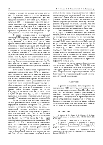 Средин В. Г., Войцеховский А. В., Ананьин О. Б., Мелехов А. П., Несмелов С. Н., Дзядух С. М. Образование поверхностных дефектов в n-CdxHg1-xTe мягким рентгеновским излучением лазерной плазмы 54
