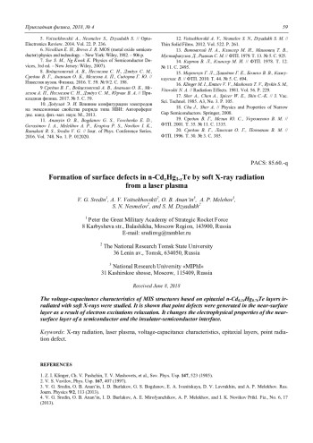9 Средин В. Г., Войцеховский А. В., Ананьин О. Б., Мелехов А. П., Несмелов С. Н., Дзядух С. М., Юрчак В. А. // Прикладная физика. 2017. № 5. С. 59.