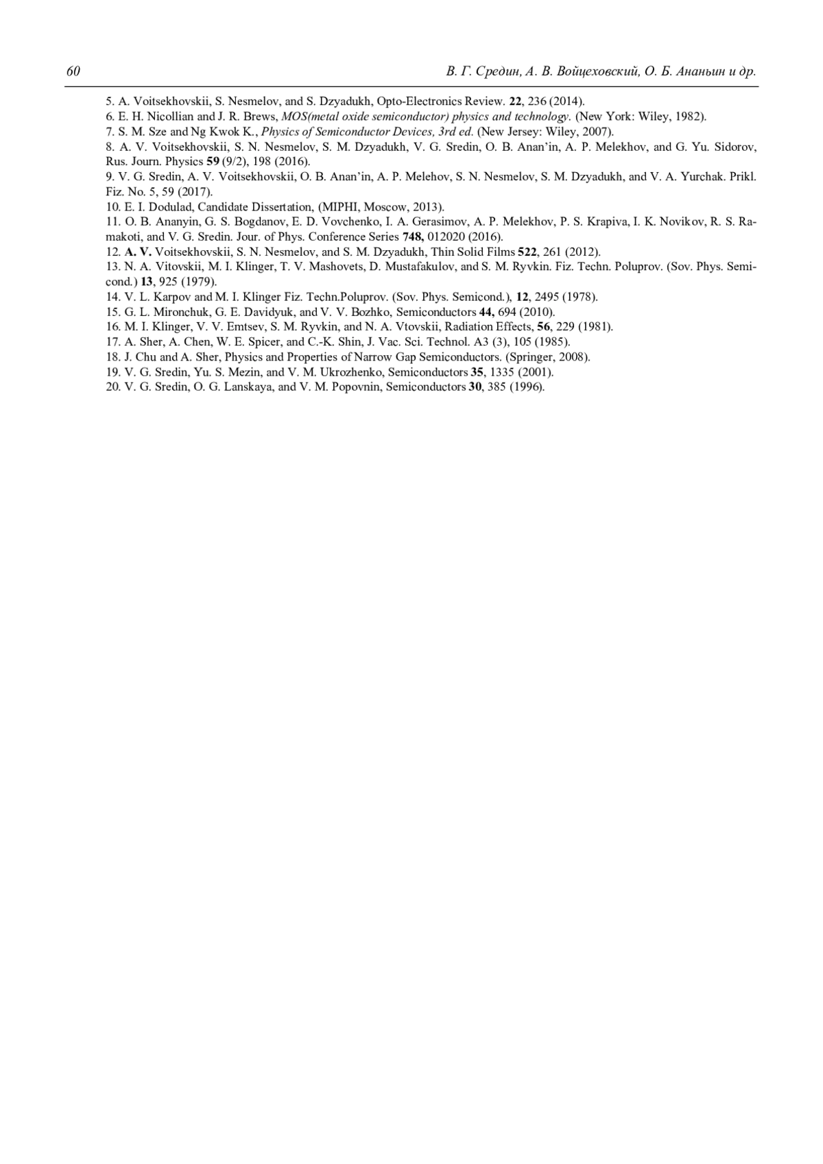 12. A. V. Voitsekhovskii, S. N. Nesmelov, and S. M. Dzyadukh, Thin Solid Films 522, 261 (2012).