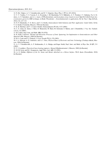 21. Voitsekhovskii A. V., Kokhanenko A. P., Shulga S. A., Smith R. // Nucl. Instr. and Meth. in Phys. Res. B. 2005. Vol. 227. P. 531.