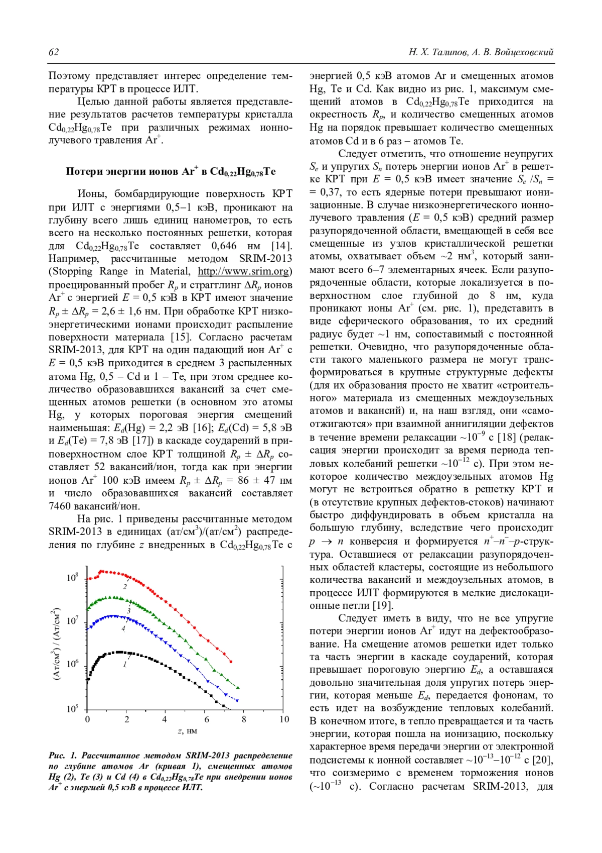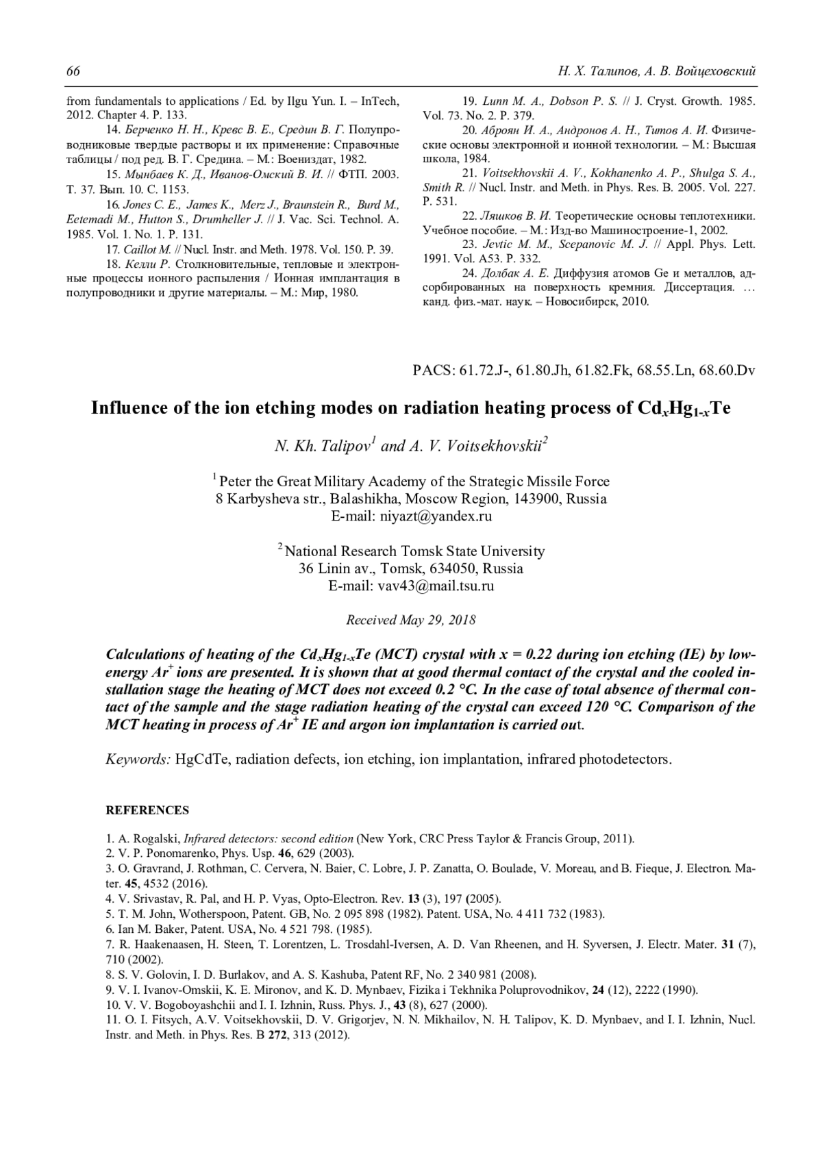 Талипов Н. Х., Войцеховский А. В. Влияние режимов ионно-лучевого травления на процесс радиационного нагрева CdxHg1-xTe 61