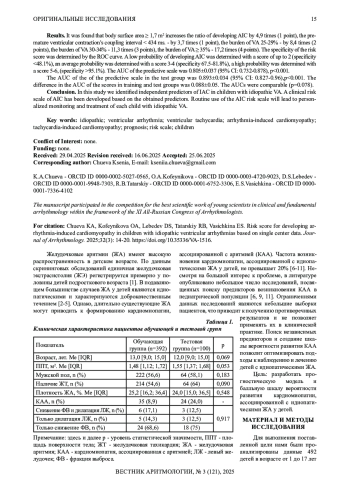 Chueva KA, Kofeynikova OA, Tatarskiy RB, et al. Risk factors for the development of tachycardia-induced cardiomyopathy in children with idiopatic ventricular arrhythmia. Children’s Heart and Vascular Diseases. 2024; 21 (4): 297-304 (in Russ.). DOI: 10.24022/1810-0686-2024-21-4-297-304