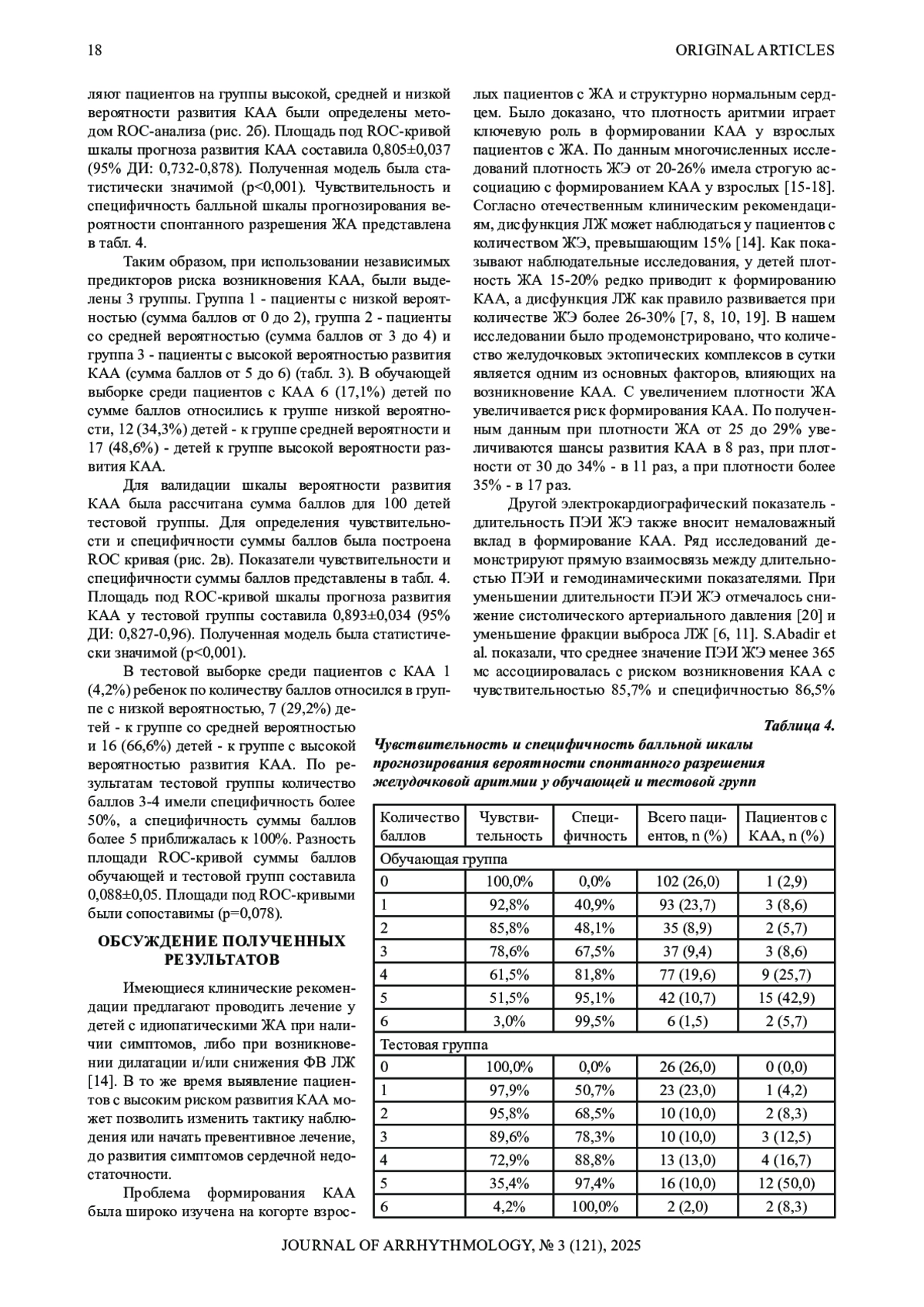 Цель. Разработать прогностическую модель и балльную шкалу вероятности развития кардиомиопатии (КАА), ассоциированной с идиопатическими желудочковыми аритмиями (ЖА) у детей.