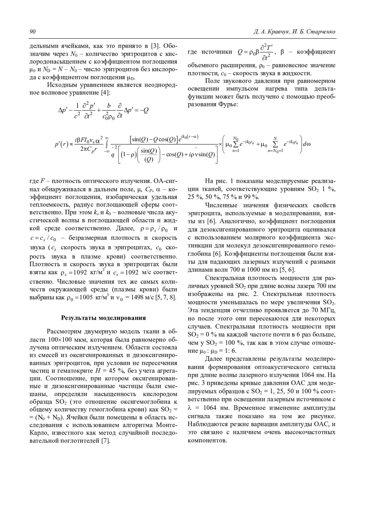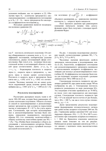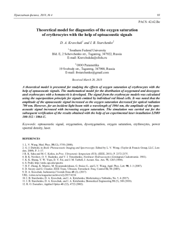 Кравчук Д. А., Старченко И. Б. Теоретическая модель для диагностики эффекта кислородонасыщения эритроцитов с помощью оптоакустических сигналов 89