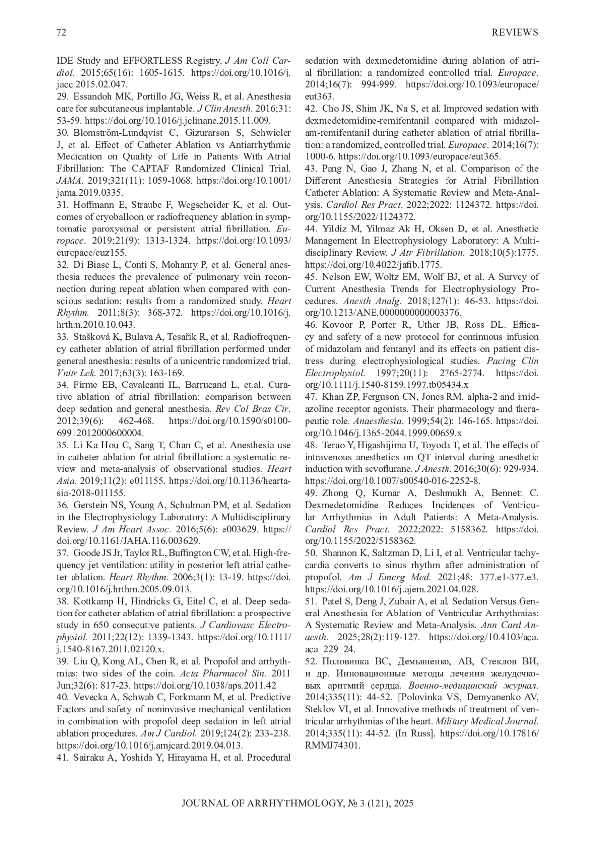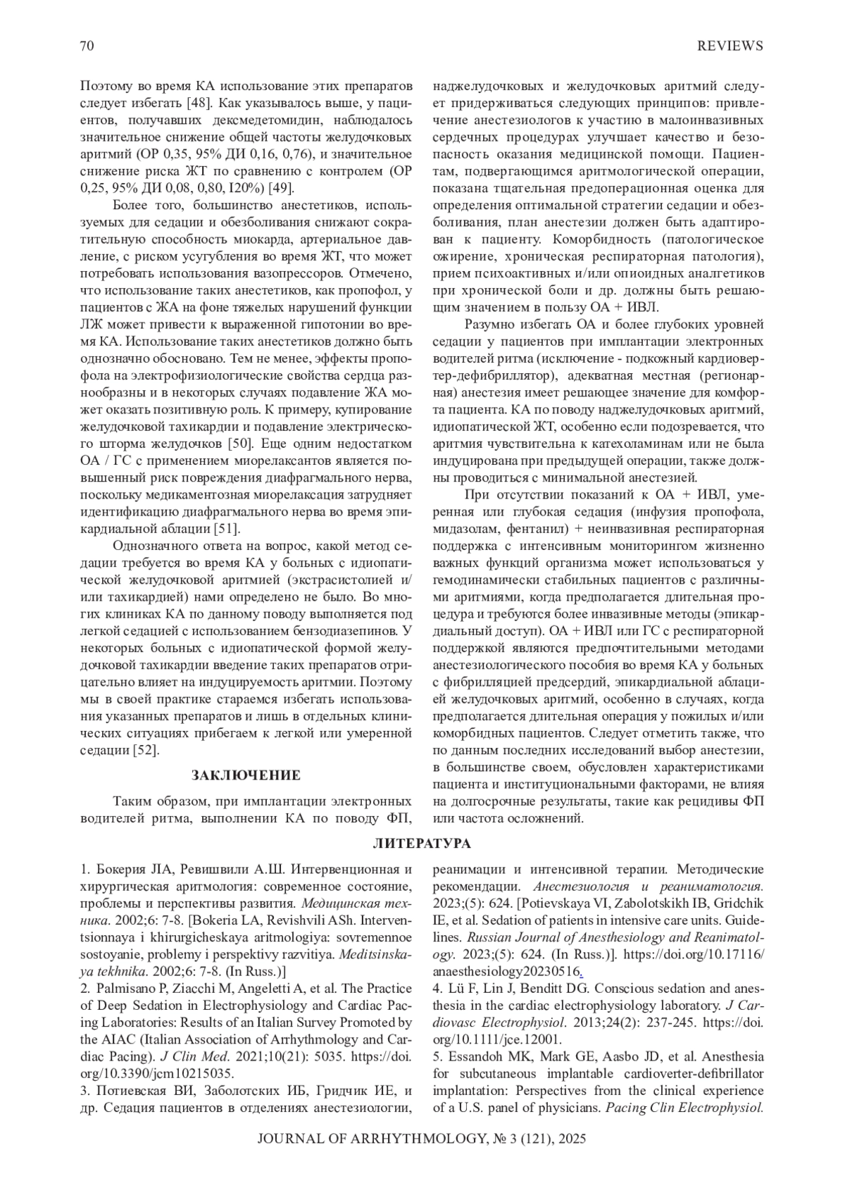 51. Patel S, Deng J, Zubair A, et al. Sedation Versus General Anesthesia for Ablation of Ventricular Arrhythmias: A Systematic Review and Meta-Analysis. Ann Card Anaesth. 2025;28(2):119-127. DOI: 10.4103/aca.aca_229_24