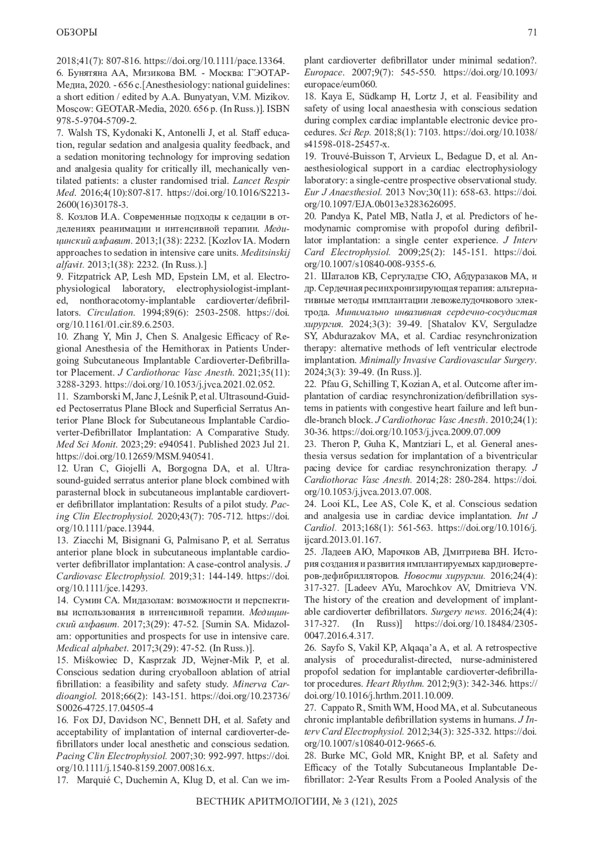 21. Шаталов КВ, Сергуладзе СЮ, Абдуразаков МА, и др. Сердечная ресинхронизирующая терапия: альтернативные методы имплантации левожелудочкового электрода. Минимально инвазивная сердечно-сосудистая хирургия. 2024;3(3): 39-49.