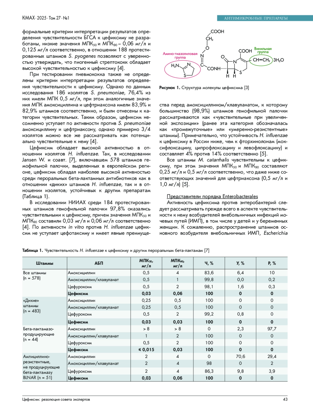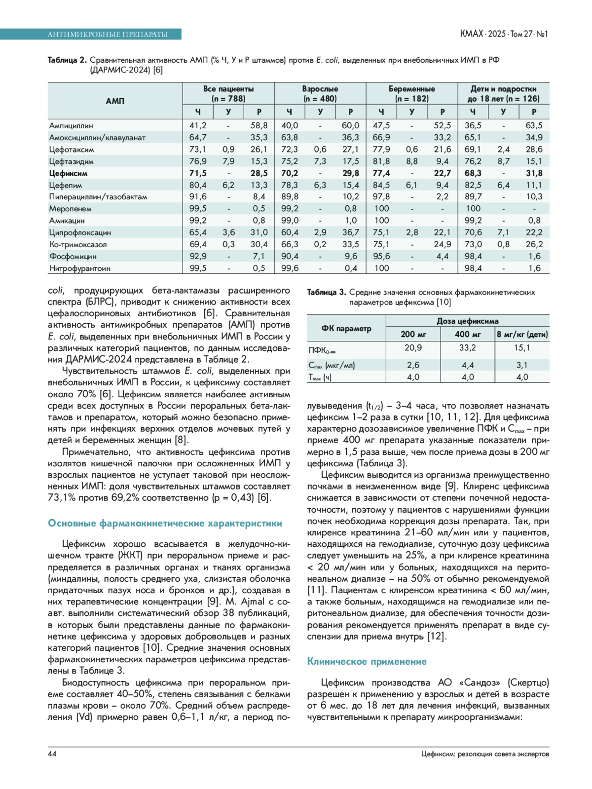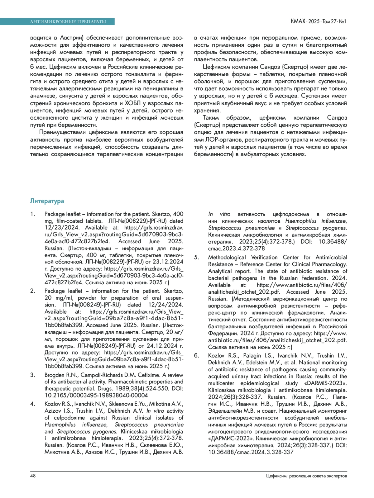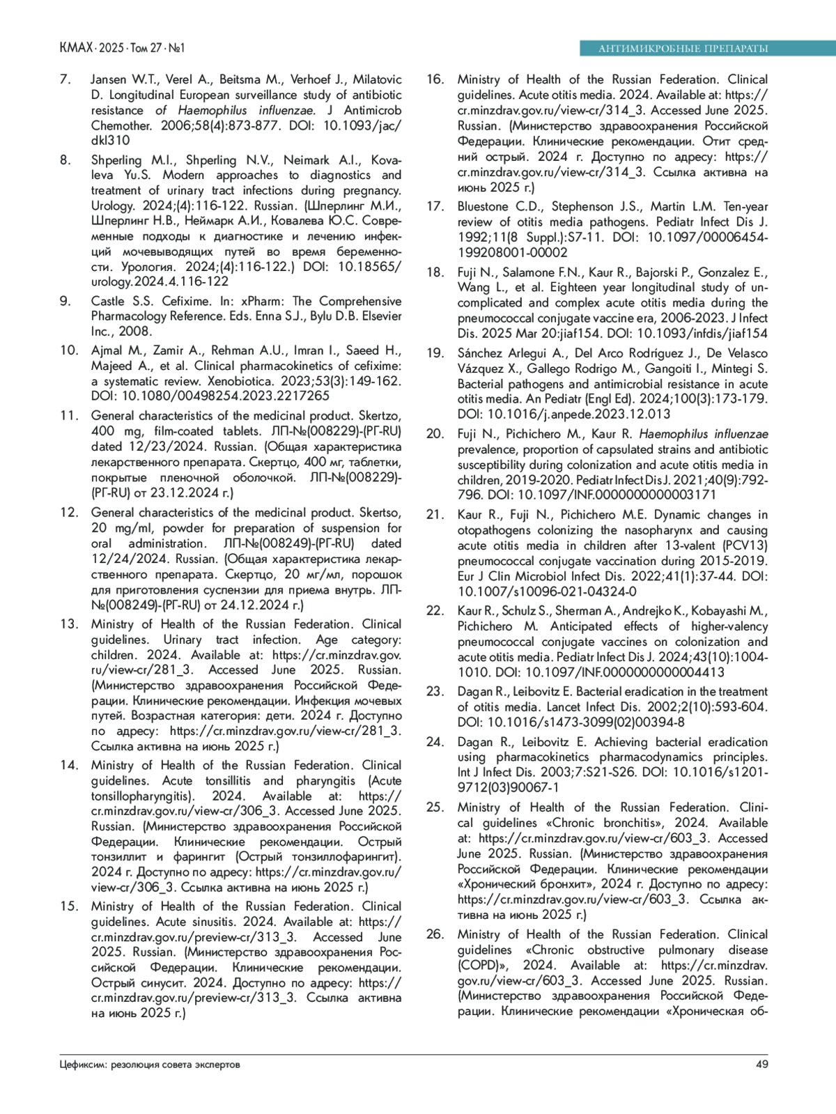 10. Ajmal M., Zamir A., Rehman A.U., Imran I., Saeed H., Majeed A., et al. Clinical pharmacokinetics of cefixime: a systematic review. Xenobiotica. 2023;53(3):149-162. DOI: 10.1080/00498254.2023.2217265 EDN: RKOLNF