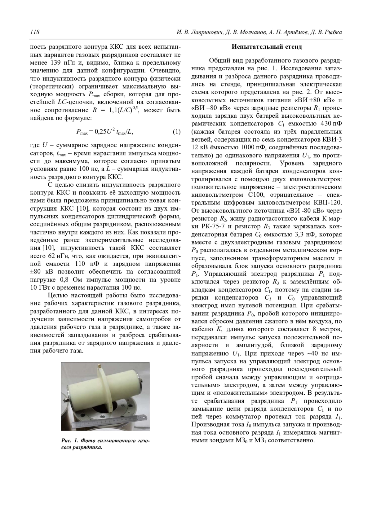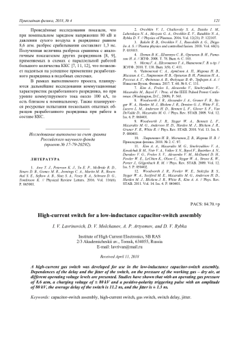 I. V. Lavrinovich, D. V. Molchanov, A. P. Artyomov, and D. V. Rybka High-current switch for a low-inductance capacitor-switch assembly 117