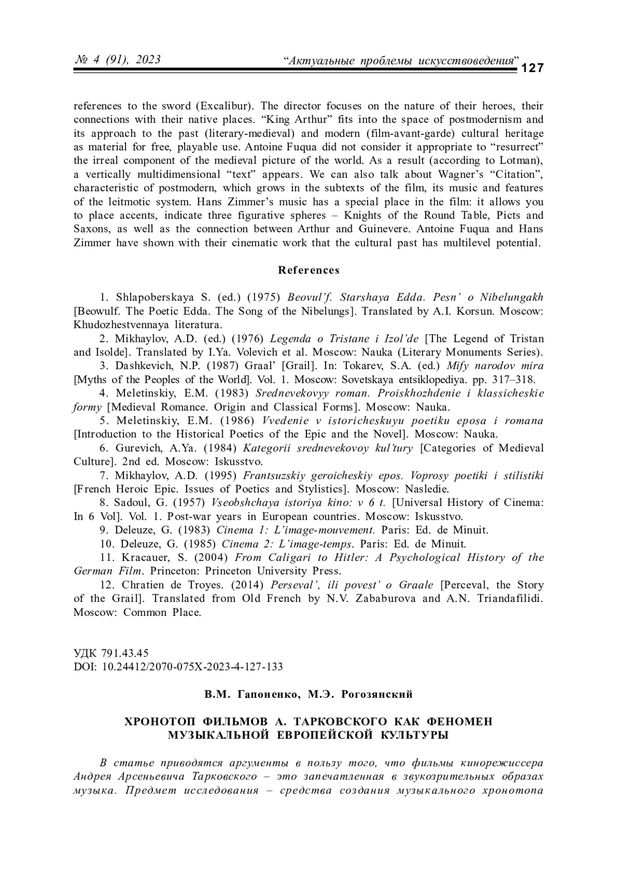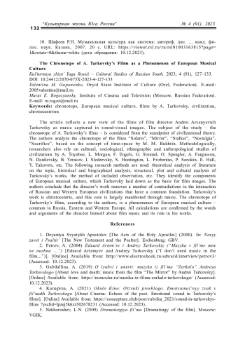 3. Габдуллина А. О любви и смерти: музыка из фильма “Зеркало” Андрея Тарковского / Monocler.ru, 2015-2023. URL: https://monocler.ru/muzika-iz-filma-zerkalo-tarkovskogo/(дата обращения: 10.12.2023).