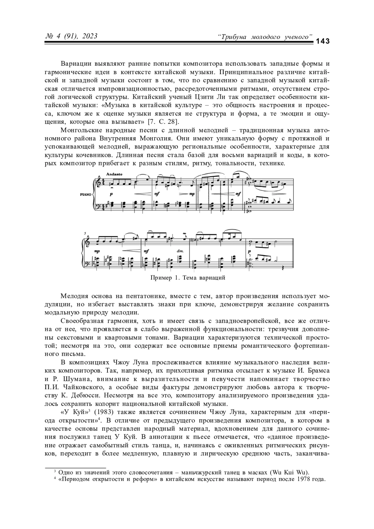6. Wei Jiao. Chinese and Western Elements in Contemporary Chinese Composer Zhou Long’s Works for Solo Piano Mongolian Folk-Tune Variations, Wu Kui, and Pianogongs. Musical Arts Dr. Diss. Greensboro, 2014. 136 p.
