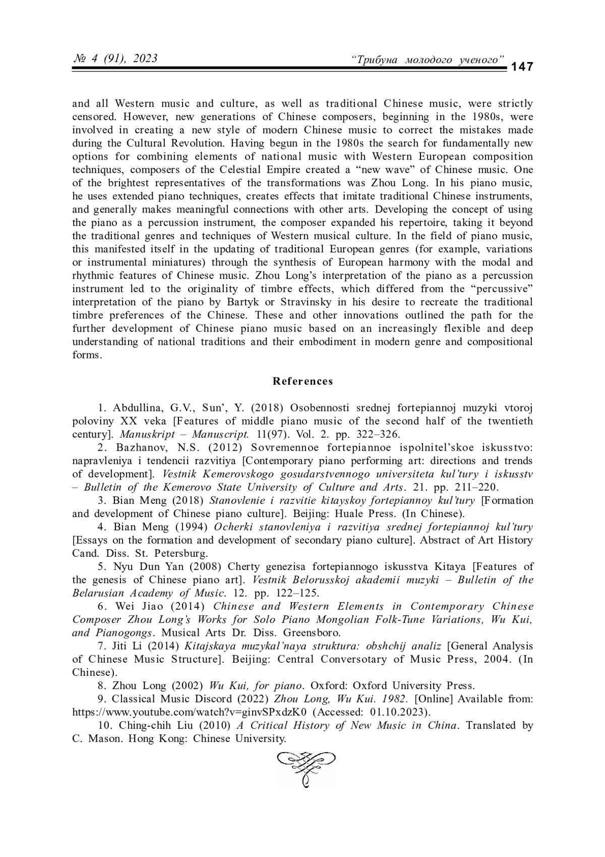 4. Бьянь Мэн. Очерки становления и развития средней фортепианной культуры: автореф. дис.. канд. искусствоведения. СПб., 1994. 22 с.