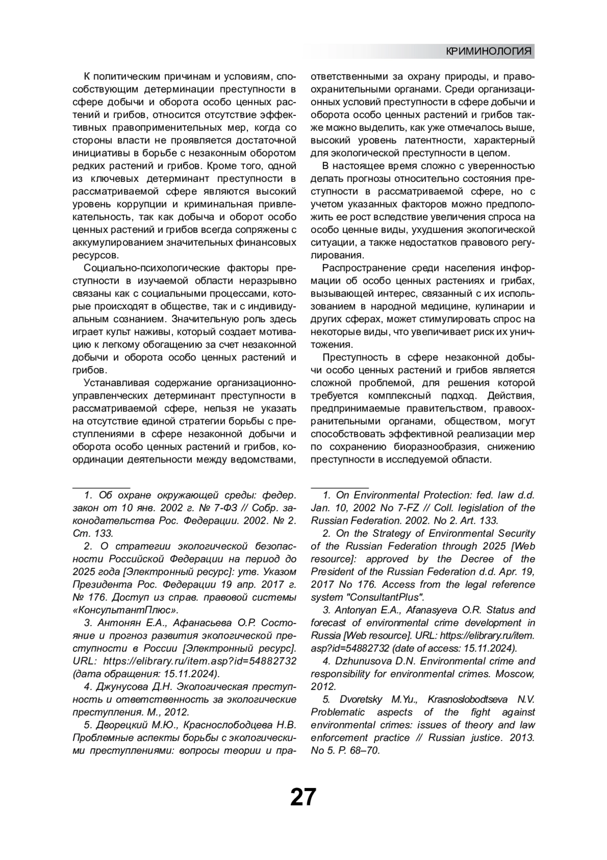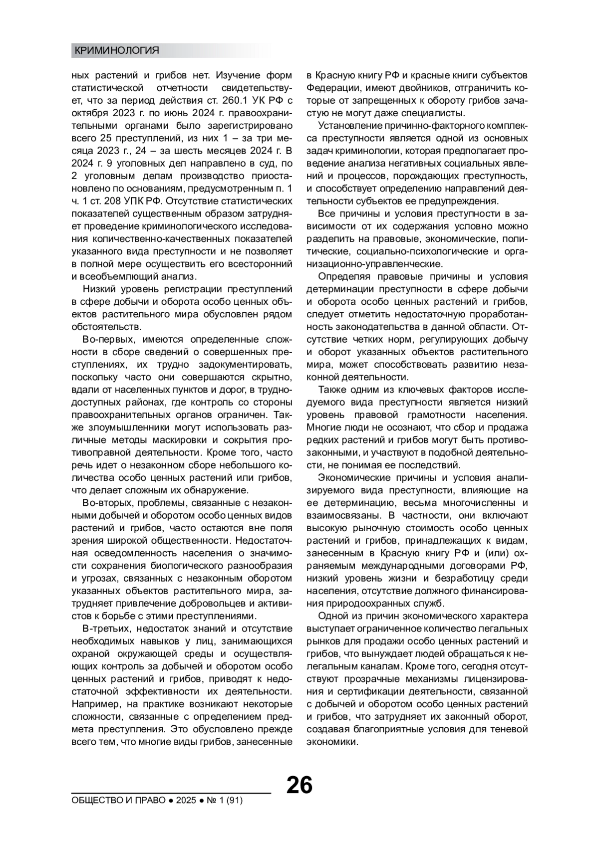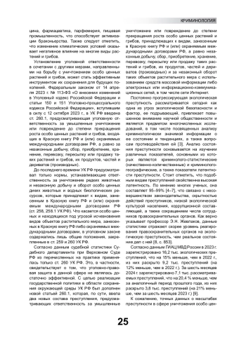 Статья: СОСТОЯНИЕ, ДЕТЕРМИНАЦИЯ И ТЕНДЕНЦИИ ПРЕСТУПНОСТИ В СФЕРЕ ДОБЫЧИ И ОБОРОТА ОСОБО ЦЕННЫХ РАСТЕНИЙ (2025)