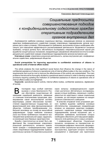 17. Симоненко Д.А. О формировании частной научной теории конфиденциального содействия отдельных лиц оперативным подразделениям органов внутренних дел // Вестник Уральского юридического института МВД России. 2023. № 2(38). С. 144-148. EDN: DPVACI