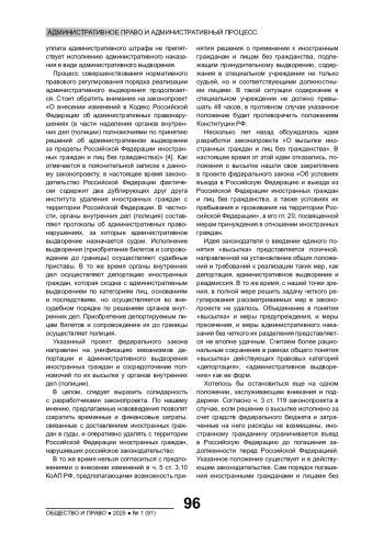 Вопросы миграции в последнее время приобрели особую актуальность для Российской Федерации. Сегодня активно ведется разработка основных положений следующей Концепции миграционной политики. Как известно, государства самостоятельно, с учетом своих национальных интересов определяют направления миграционной политики, устанавливают принудительные меры, применяемые к иностранным гражданам и лицам без гражданства, в том числе и те, которые направлены на прекращение физического их пребывания на территории страны.