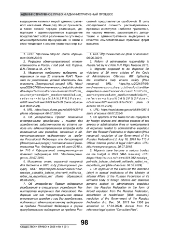 3. Мигрантов предложено выдворять за нарушения по еще 20 статьям КоАП. Поможет ли ужесточение условий обеспечить безопасность [Электронный ресурс]. URL: https://rg.ru/2024/07/08/mvd-namereno-uzhestochit-usloviia-dlia-deportacii-inostrancev-iz-rossii.html?utm_source=yxnews&utm_medium=mobile&utm_referrer=https%3A%2F%2Fdzen.ru%2Fnews%2Fsearch%3Ftext%3D (дата обращения: 06.06.2024).