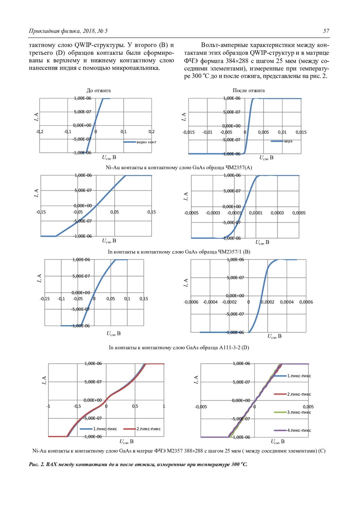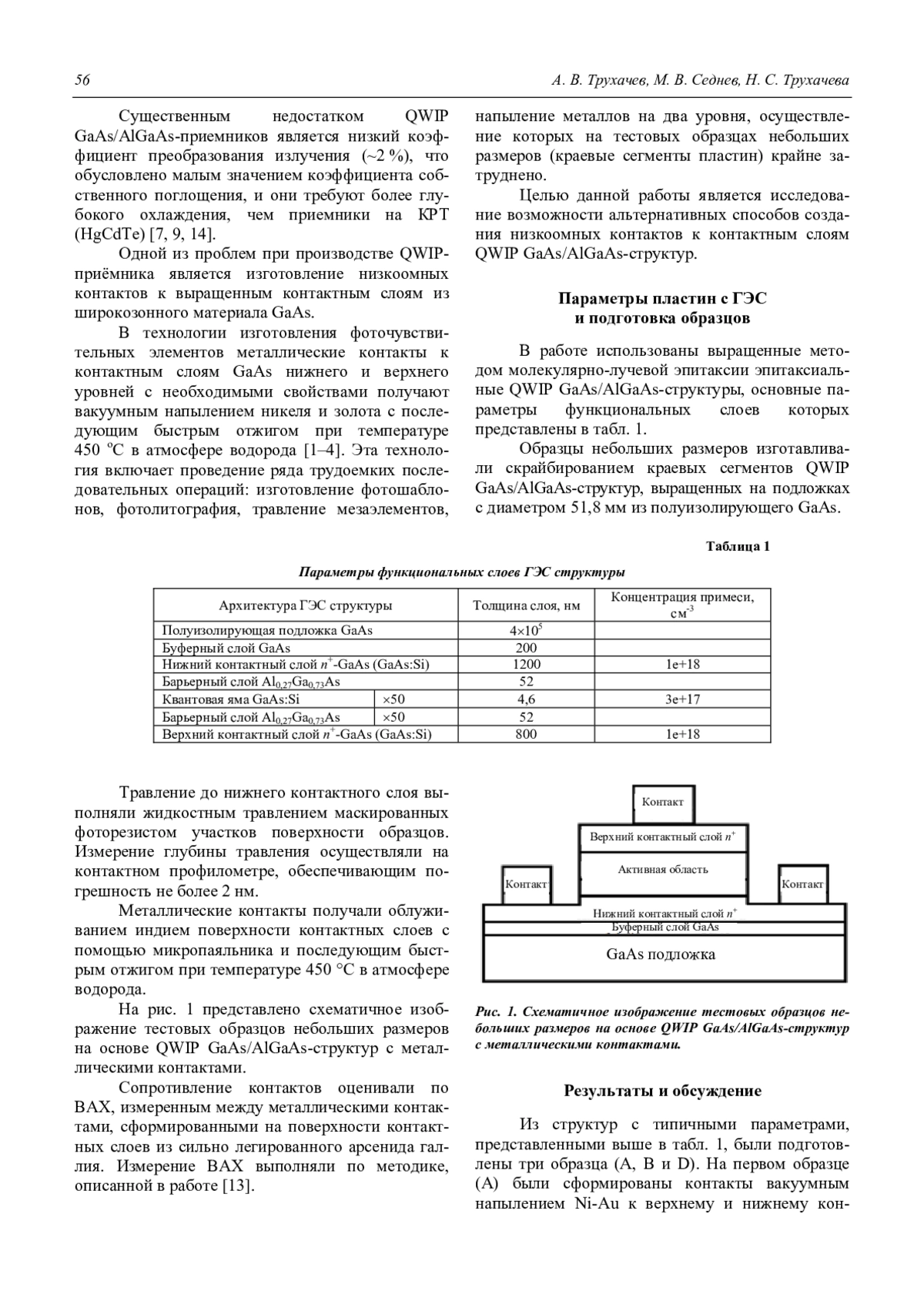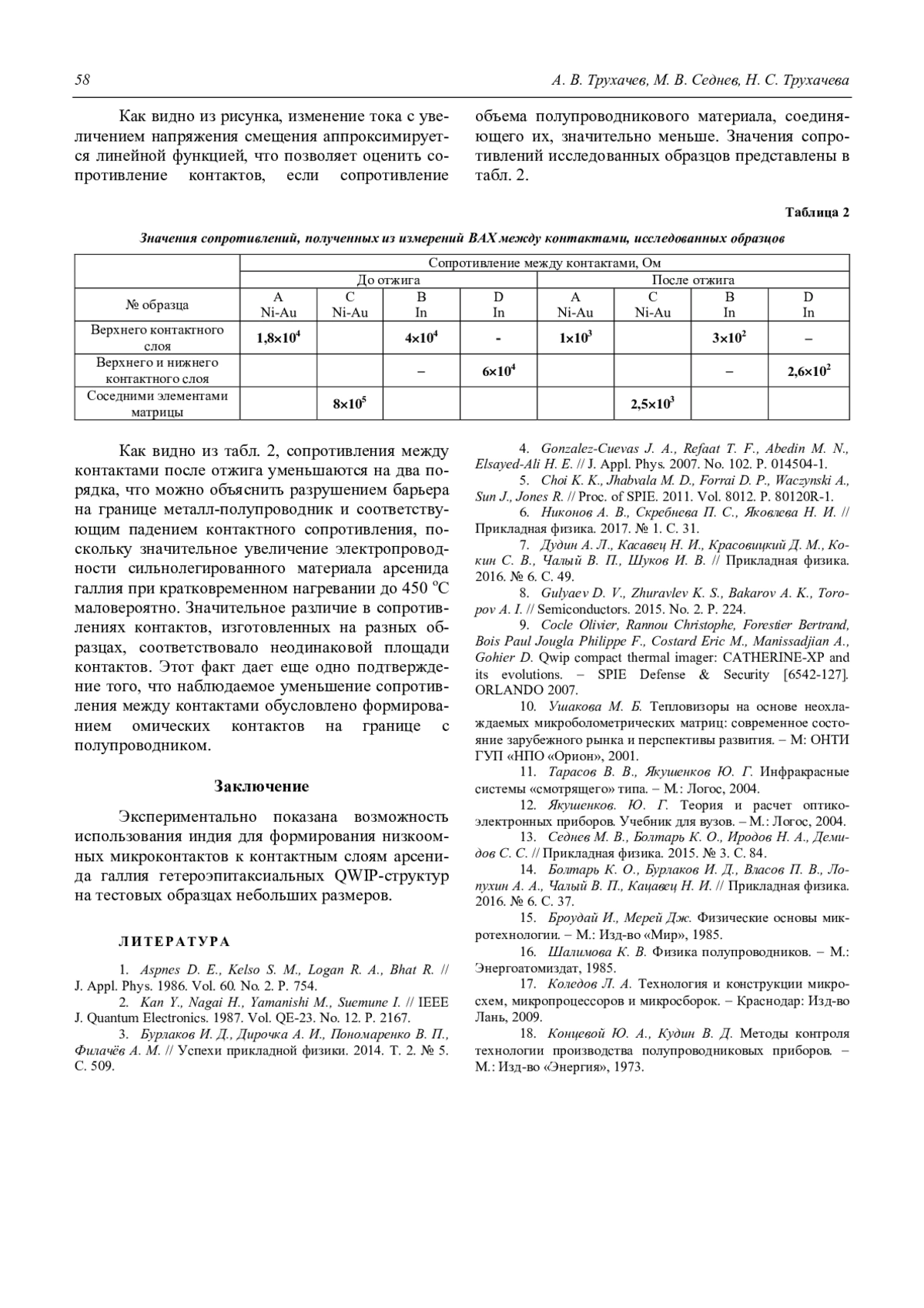 Трухачев А. В., Седнев М. В., Трухачева Н. С. Применение индия для формирования низкоомных микроконтактов к контактным слоям арсенида галлия гетероэпитаксиальных QWIP-структур 55