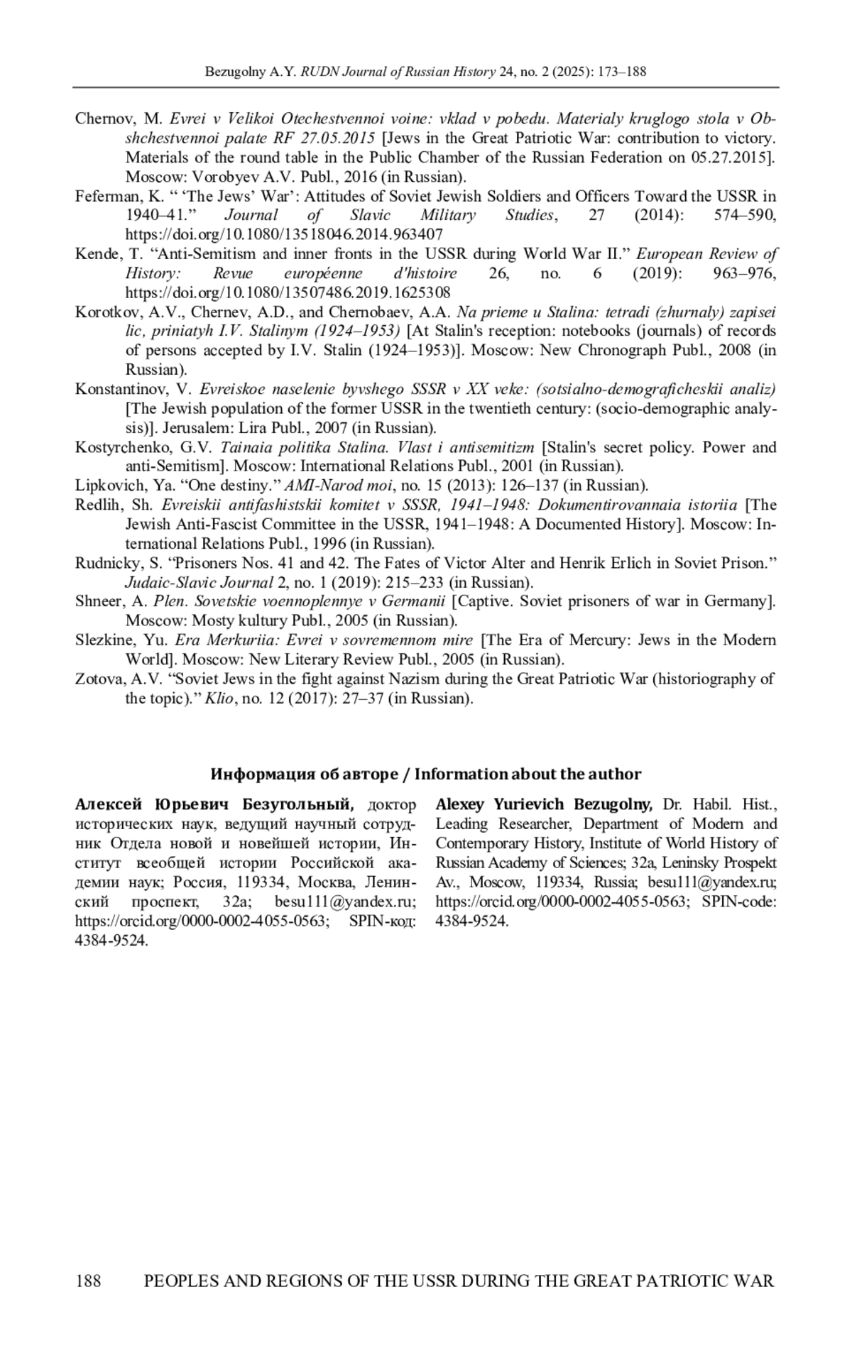 16. Kende Т. Anti-Semitism and inner fronts in the USSR during World War II // European Review of History: Revue européenne d’histoire. 2019. Vol. 26. № 6. P. 963-976. DOI: 10.1080/13507486.2019.1625308