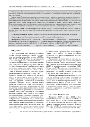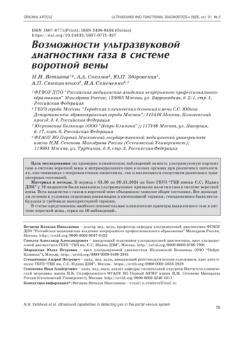 Статья: ВОЗМОЖНОСТИ УЛЬТРАЗВУКОВОЙ ДИАГНОСТИКИ ГАЗА В СИСТЕМЕ ВОРОТНОЙ ВЕНЫ (2025)