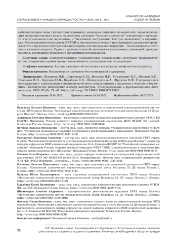 26. Benozzi L., Cappelli G., Granito M. et al. Contrast-enhanced sonography in early kidney graft dysfunction. Transplant. Proc. 2009; 41 (4): 1214-1215.