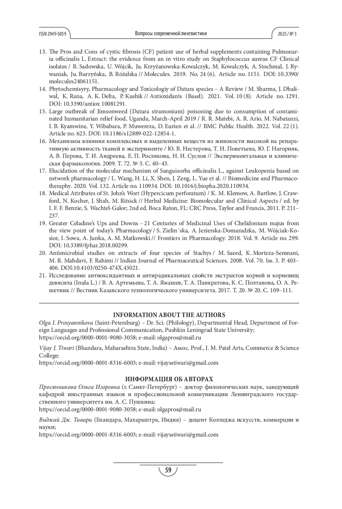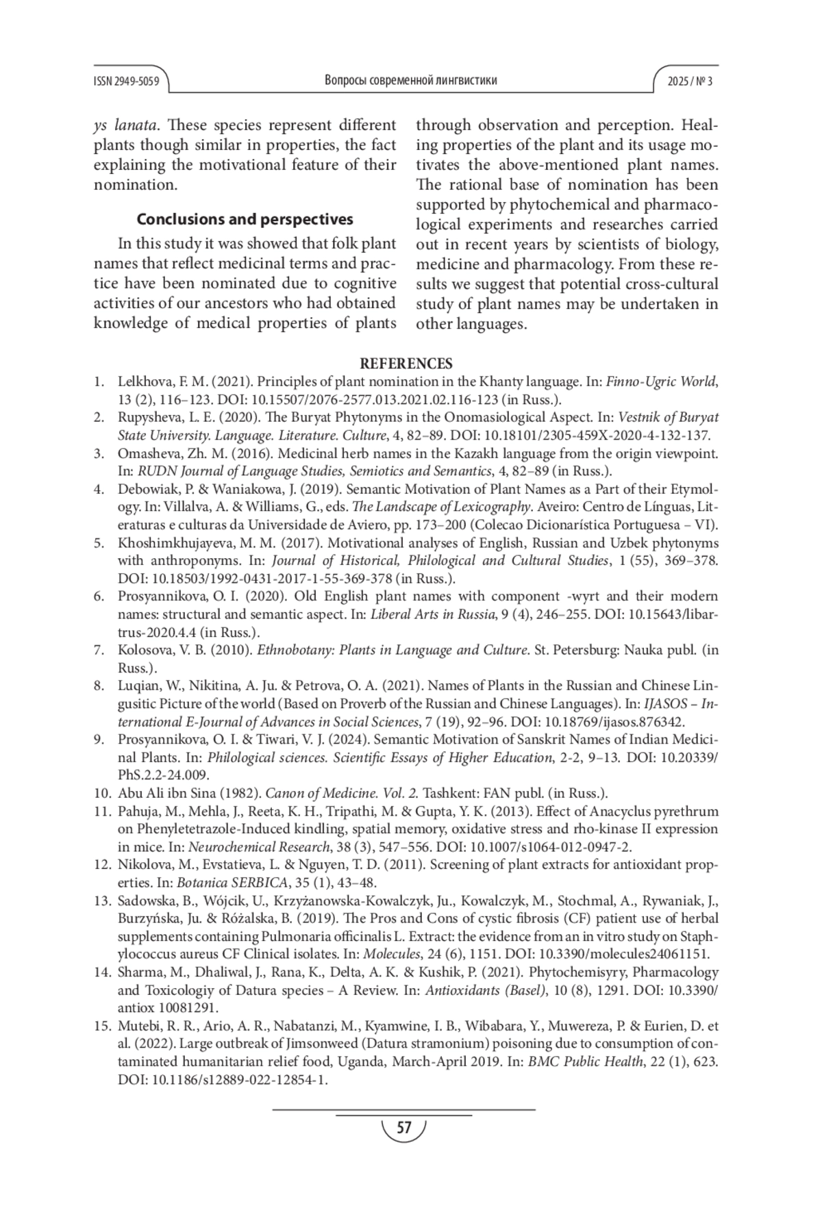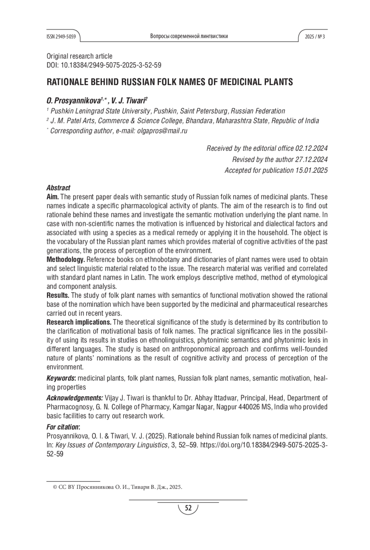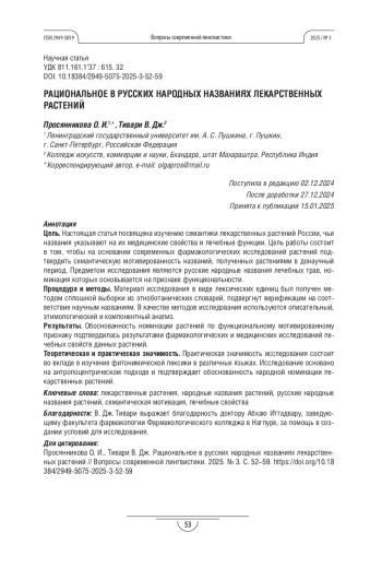 ПРОСЯННИКОВА О. И., ТИВАРИ В. ДЖ. РАЦИОНАЛЬНОЕ В РУССКИХ НАРОДНЫХ НАЗВАНИЯХ ЛЕКАРСТВЕННЫХ РАСТЕНИЙ // ВОПРОСЫ СОВРЕМЕННОЙ ЛИНГВИСТИКИ. 2025. № 3