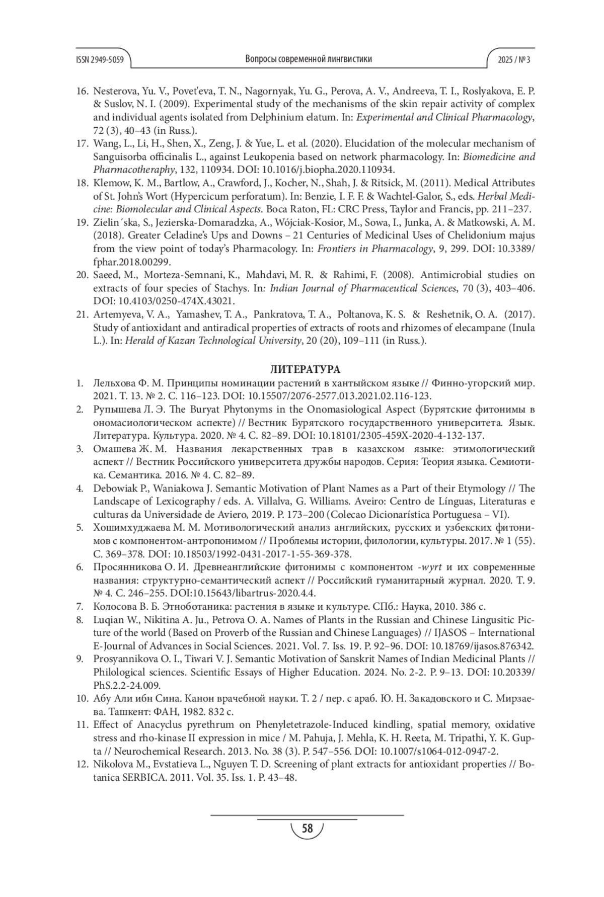 Статья: РАЦИОНАЛЬНОЕ В РУССКИХ НАРОДНЫХ НАЗВАНИЯХ ЛЕКАРСТВЕННЫХ РАСТЕНИЙ (2025)