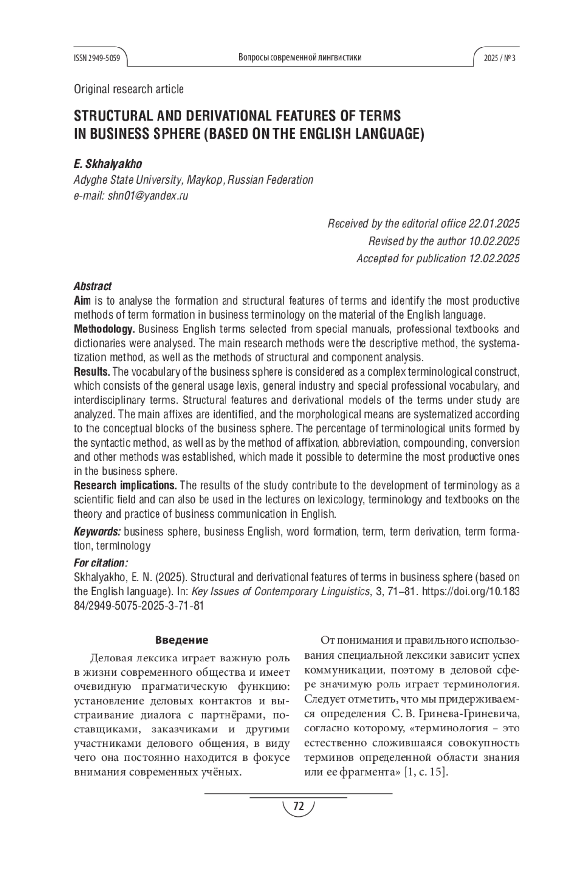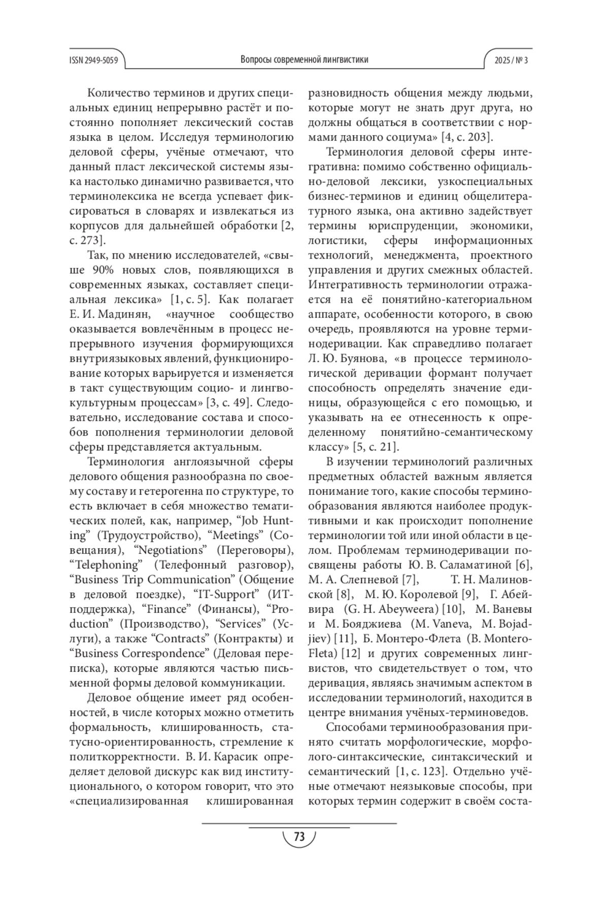 3. Мадинян Е.И. Способы образования терминологических неологизмов в английском языке делового общения // Вестник Московского государственного областного университета. Серия: Лингвистика. 2022. № 5. С.48-58. DOI: 10.18384/2310-712X-2022-5-48-58 EDN: BXCKFN