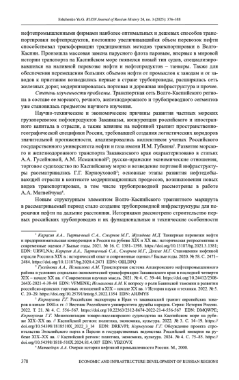 9. Карцхия А.А., Тыртычный С.А., Смирнов М.Г., Долгих М.Г. Трубопроводные поставки нефти в России на рубеже XIX-XX вв.: историческая ретроспектива и современные оценки // Былые годы. 2022. № 17. С. 812-823. ;. DOI: 10.13187/bg.2022.2.812 EDN: OAMWYW