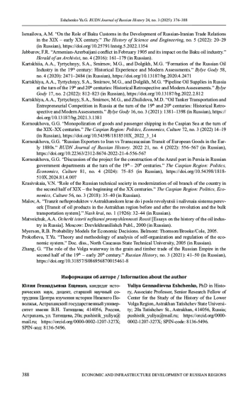 2. Гусейнова А.А., Исмаилова А.М. Транспортная система Апшеронского нефтепромышленного района в условиях социально-экономической трансформации Закавказского края в последней четверти XIX - начале XX вв. // Современная научная мысль. 2021. № 4. С. 39-44. ;. DOI: 10.24412/2308-264X-2021-4-39-44 EDN: VFMENK