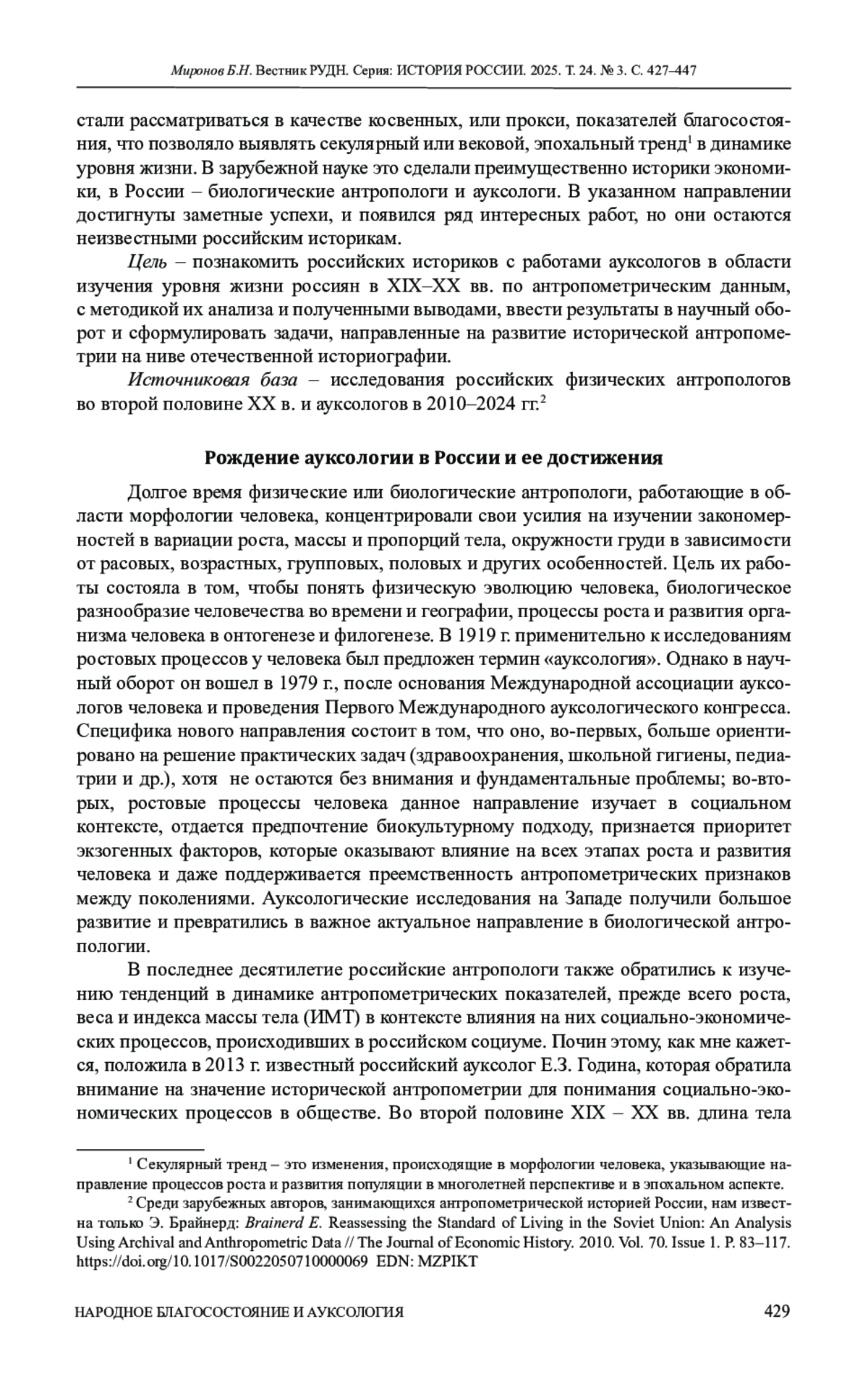 39. Brainerd E. Reassessing the Standard of Living in the Soviet Union: An Analysis Using Archival and Anthropometric Data // The Journal of Economic History. 2010. Vol. 70. Issue 1. P. 83-117. DOI: 10.1017/S0022050710000069 EDN: MZPIKT